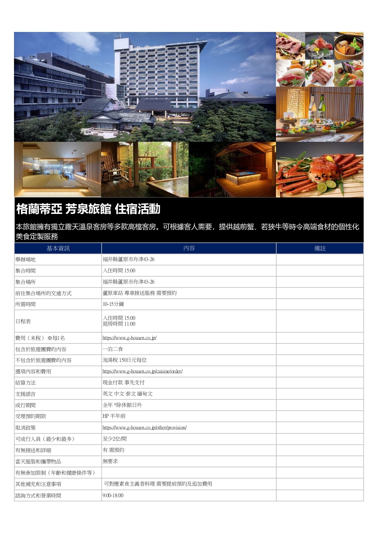 5. 格蘭蒂亞 芳泉旅館 住宿活動