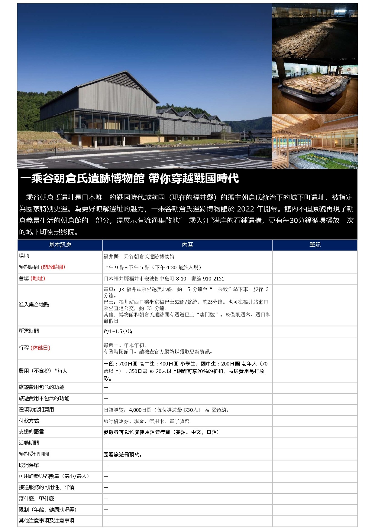 福井縣旅遊產品目錄