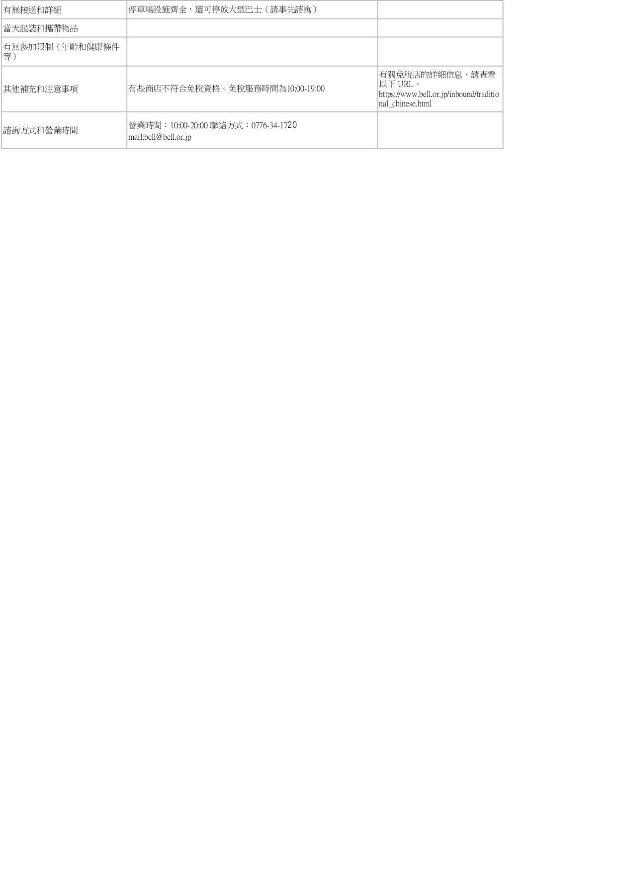 內容、價格、容量、預約詳情等資訊提供繁體中文、英文及簡體中文版本,