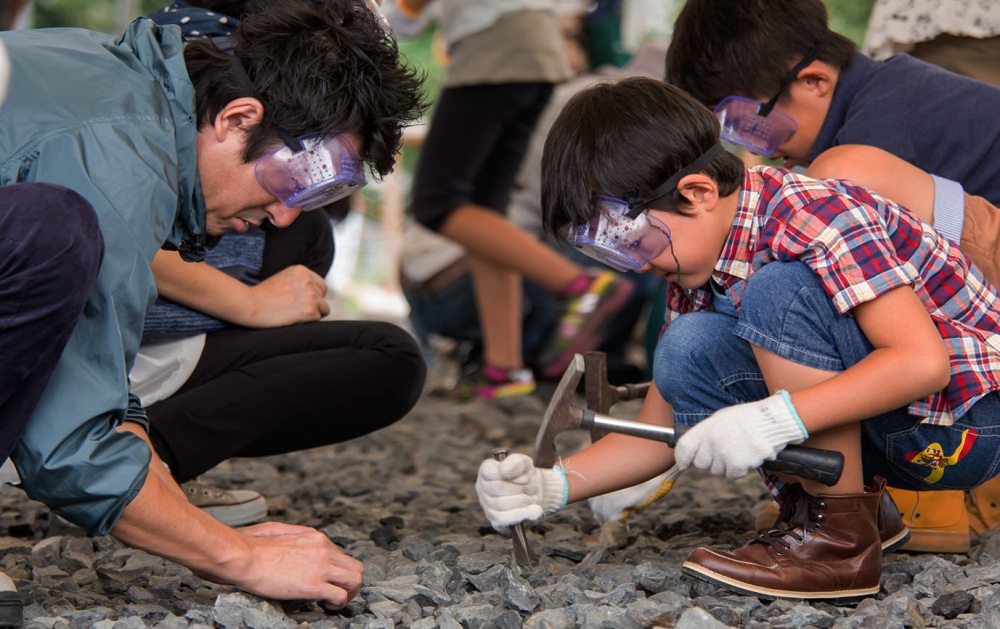 恐龍博物館所在地實為勝山恐龍森林公園園區,這裡結合蔥蔥綠意和恐龍主題,除了裝設兒童遊樂器材、在步道兩旁布置實物尺寸的恐龍模型之外,還為大人小孩提供獨一無二的親手實作體驗:立刻拿起鎚子和鑿子,尋找真正的化石!現場工作人員會示範如何鑿開岩石,人人皆可親自嘗試鑿出屬於自己的新發現。