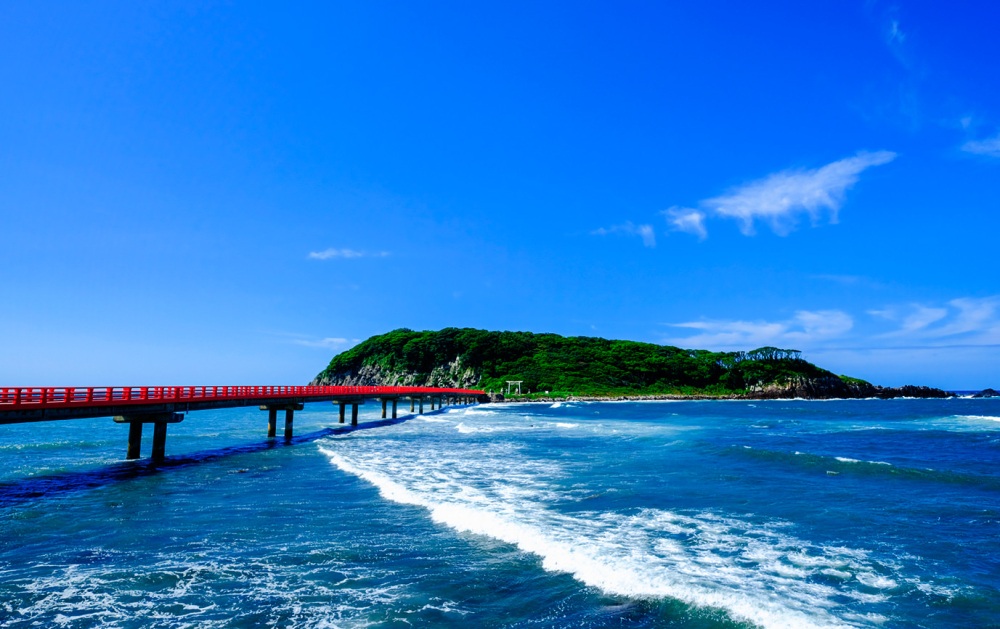 雄島在福井北部海岸邊,距離東尋坊不遠,面積小而森林密布,自古當地人即視為海神的居所,現有人行橋連接本島,島上的人造建物唯有神社、燈塔各一座。