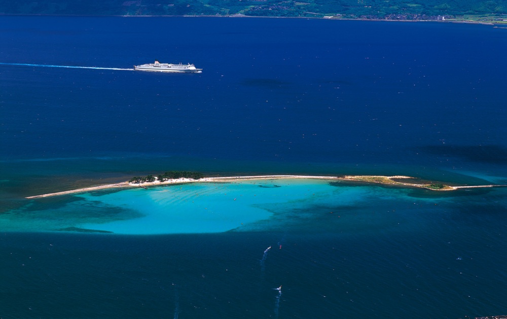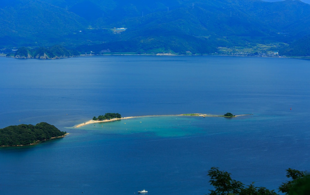 福井南部敦賀半島尾端有一座小島名為水島,每到夏季便成熱門景點,白色沙灘,清澈的藍色海水,為它帶來「北陸夏威夷」的稱號。遊客在淺水區可與魚群同泳,想更近距離接觸亦可選擇浮潛。海灘季每日有船來回本島。