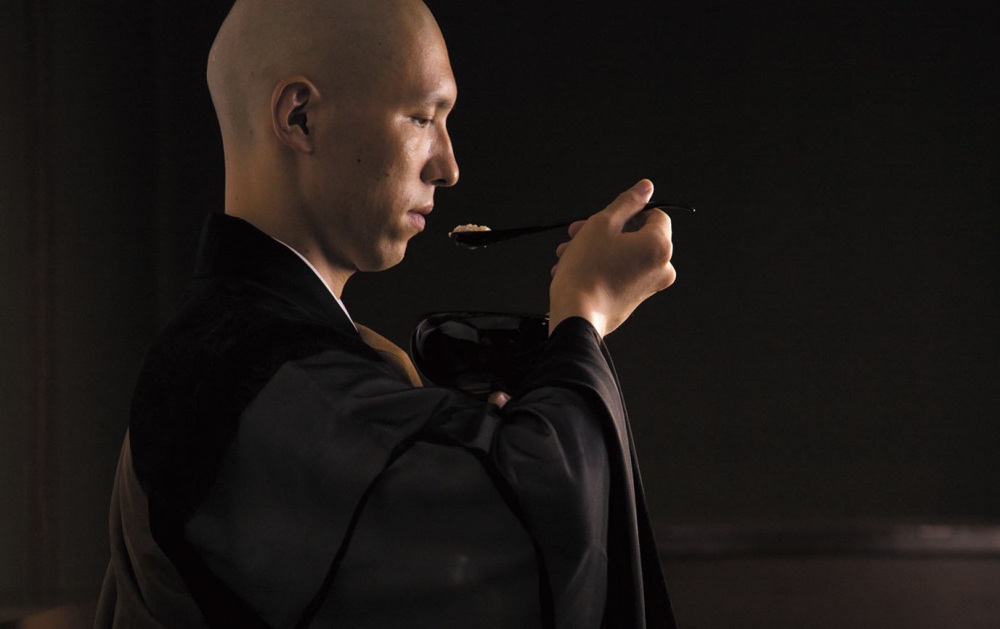 要好好領受在如此用心自律中製作出的菜餚,就必須以正確的心態用餐。道元禪師教導從烹飪中習佛修行,進食時亦同,應誠心感謝吃下的餐食,他所制定的用餐戒律儀軌流傳至今,在曹洞宗寺院內仍嚴格遵守,其核心為以下「五觀」: