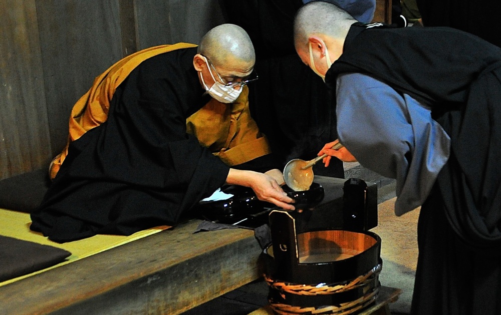 永平寺僧人的所有餐食均由分配到寺院廚房的僧侶在典座的監督下製作。 對於掌廚的僧侶來說,重要的是遵循一套被稱為「三心」的準則:
