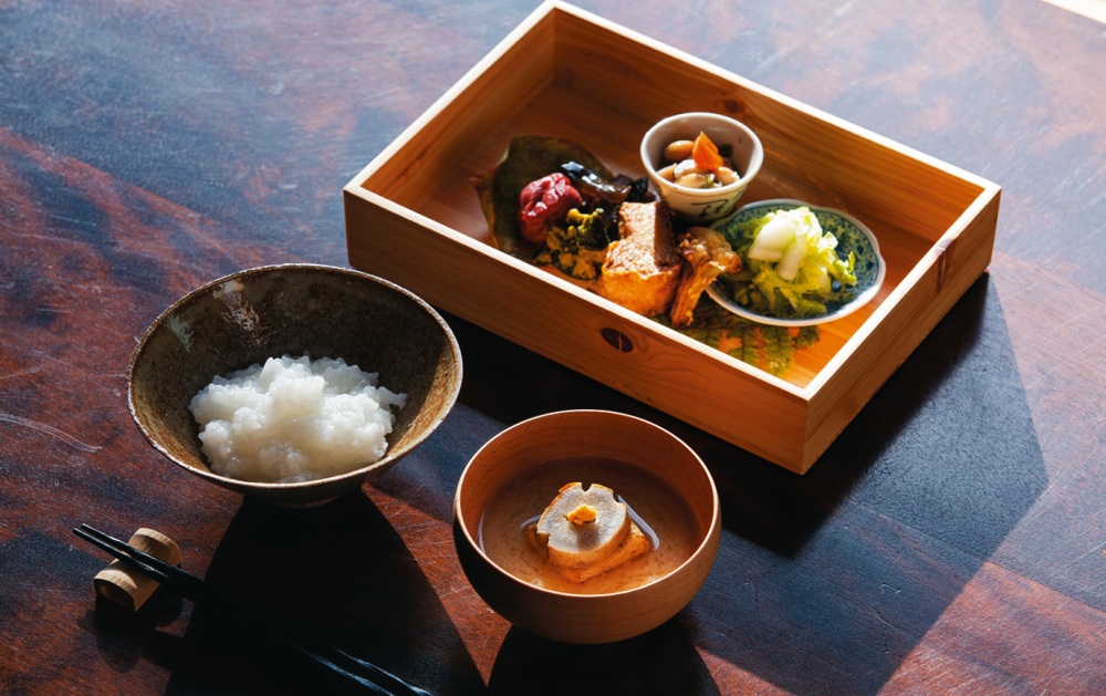 來到福井的遊客若有興趣親身體驗禪修,但不是特別虔誠,不妨考慮幾家與禪寺親近的精品旅館。小濱市松永六感藤屋與妙通寺合作,提供寺內阿字觀課程和精進料理早餐,以禪風的休憩所讓住客能暫時離開日常忙碌,利用難得的機會內觀自心,與自然連結。為此,旅館備有獨特體驗課程,例如在傳統木工手作中參禪、採摘晚餐用的蔬菜香草等等。